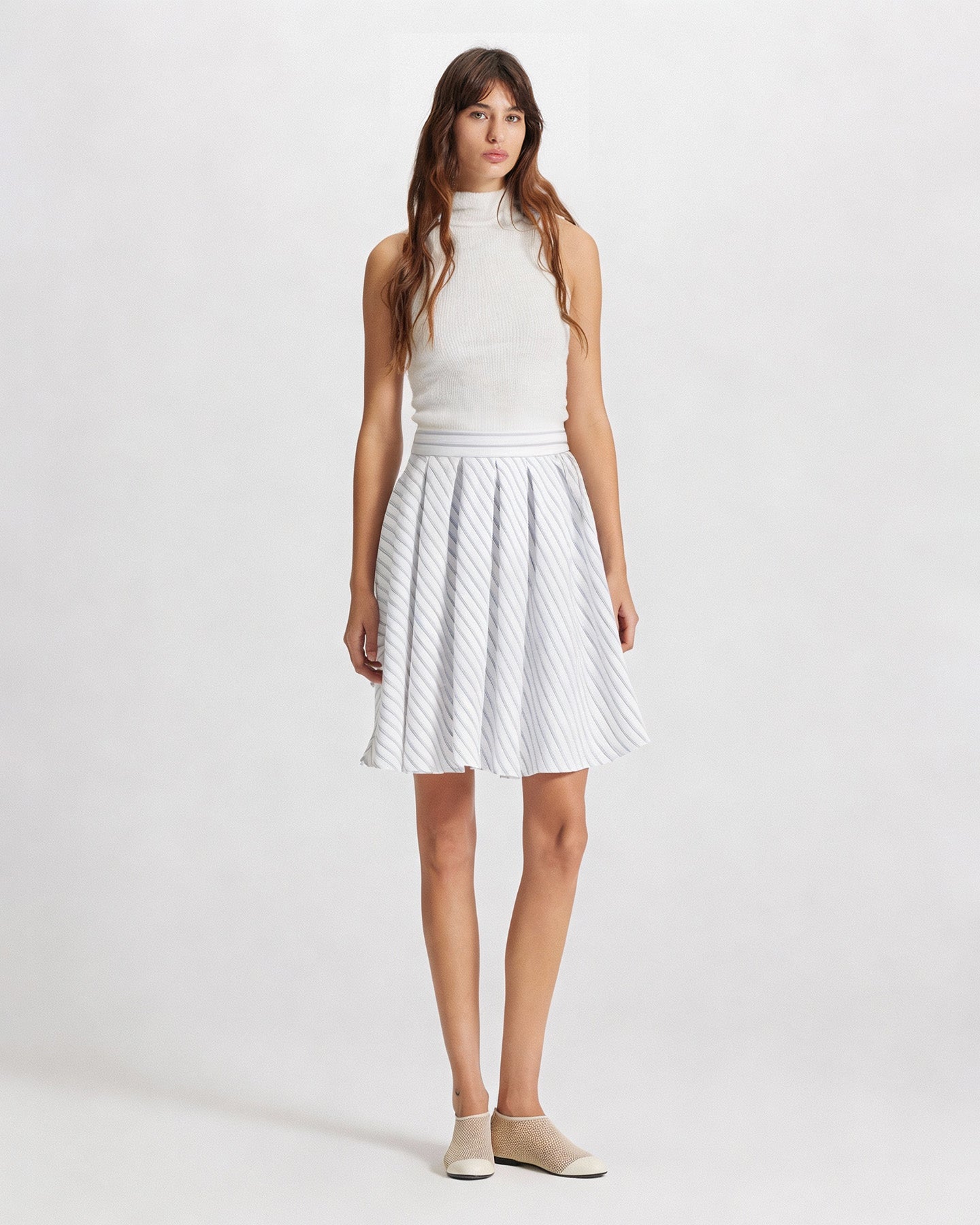 A whisper of structure and softness, the Nomia Sheer Knit Sleeveless Turtleneck is designed to balance modern minimalism with intelligent layering. Crafted in THEO's signature ultra-fine gauze, it offers a sculptural, second-skin fit with sheer breathability. The high neckline and clean edges frame the form, making it equally striking on its own or styled under structured shirting, tailored blazers, or dresses. Available in four neutral shades for seasonless versatility.