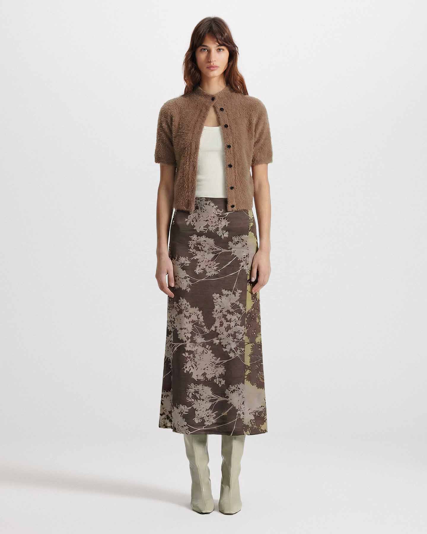 A cropped cardigan in plush knit lace, this piece features tonal buttons and a soft structure with relaxed sleeves. Wear it open over slips or buttoned with high-waisted skirts. An ideal layering staple for transitional months or cozy nights in.