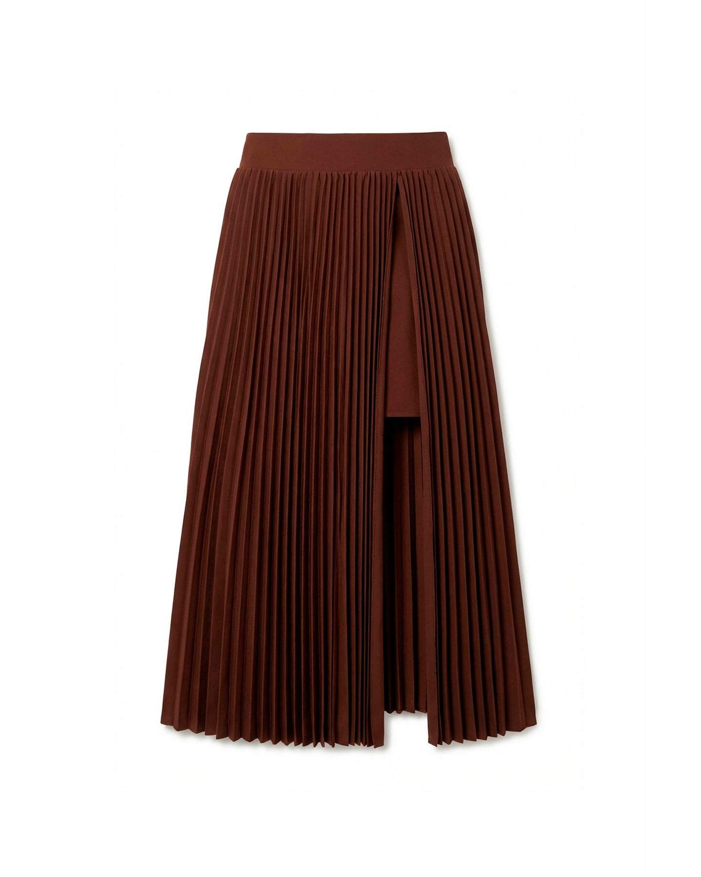 Sharp yet fluid, this knife-pleated skirt moves gracefully with every step. A high slit and exposed underlay add subtle drama, while the smooth waistband keeps the fit clean. Pair it with a tucked-in blouse or blazer for a striking day-to-night look.