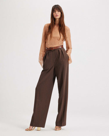 ◦ High-waisted silhouette with soft pleats at the front