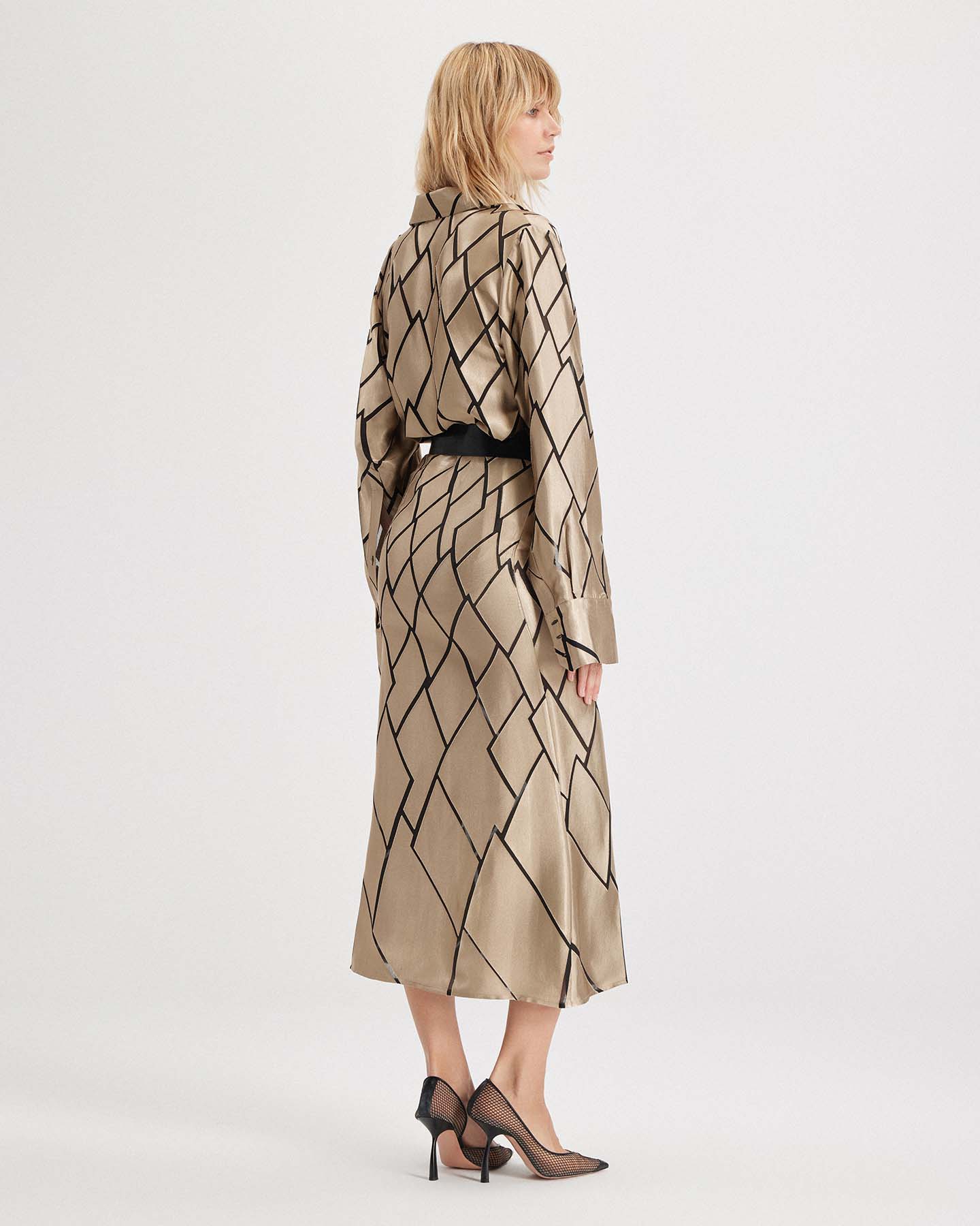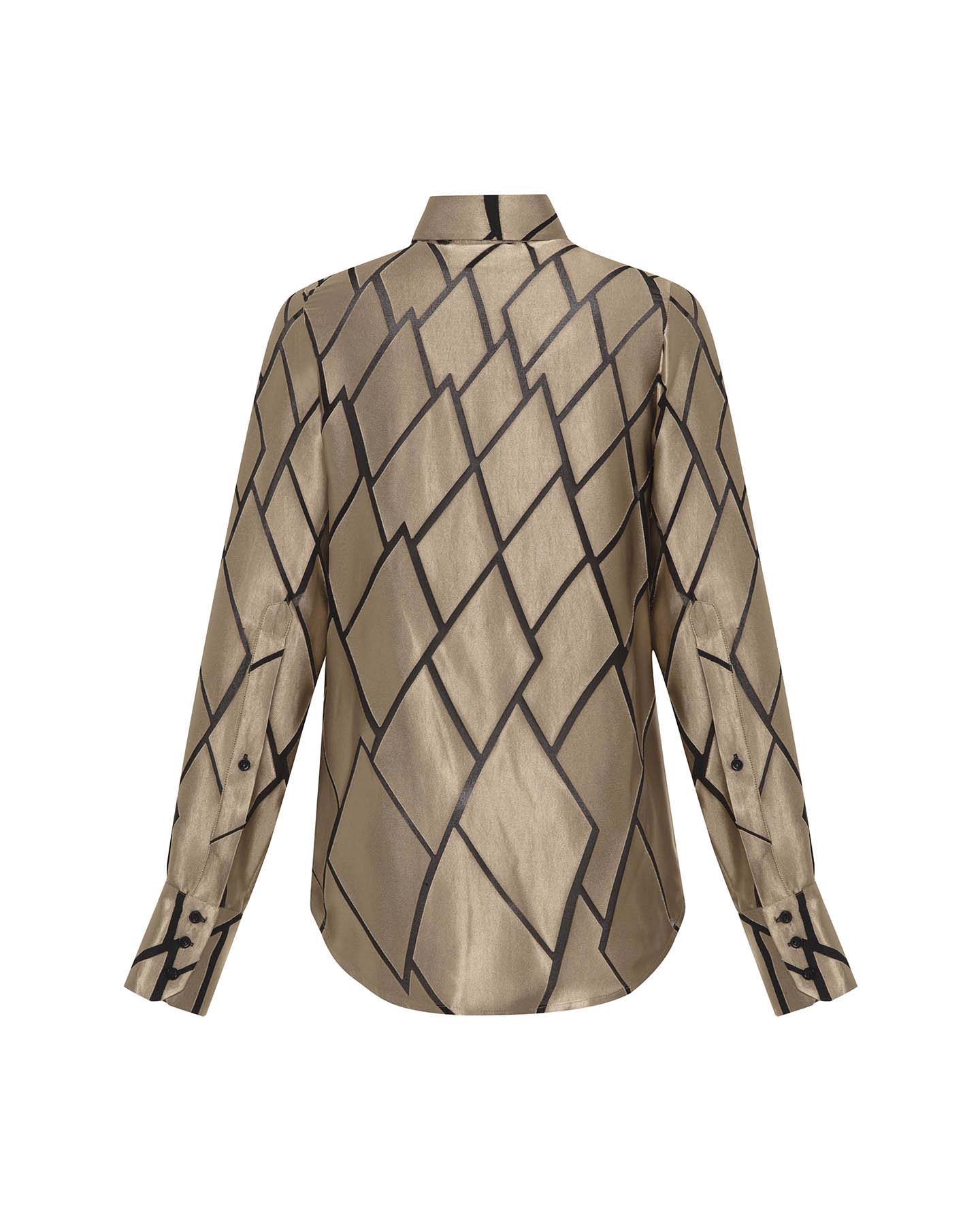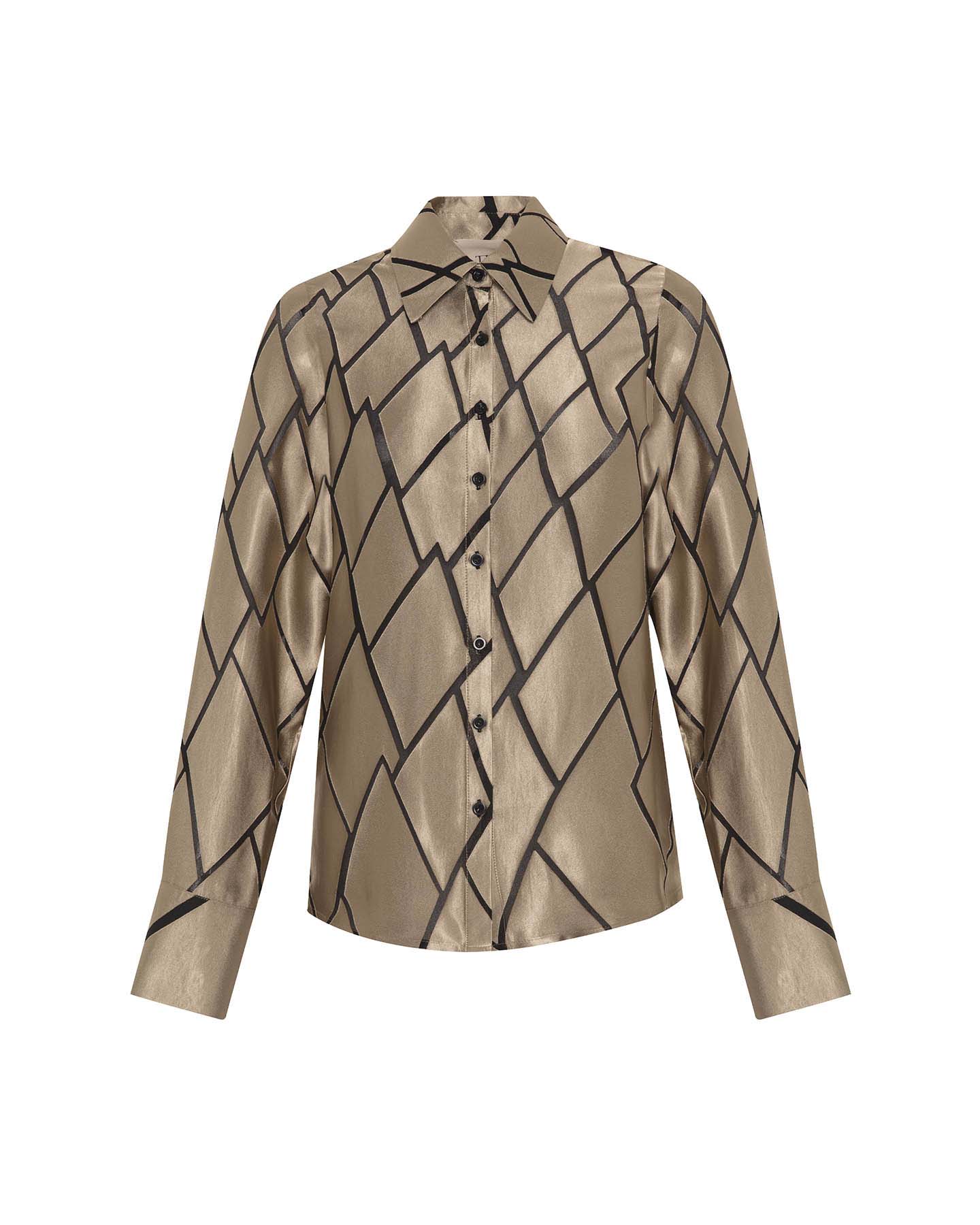 ◦ Oversized boyfriend shirt in satin burnout with geometric pattern
