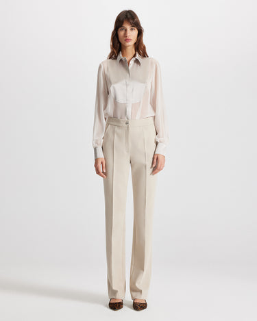 A refined addition to any wardrobe, these high-waisted pants feature a clean straight-leg cut with a polished front crease and tailored waistband for an elongated, sculpted look. Crafted from a four-way stretch fabric, they offer daylong comfort while maintaining structure. Style with crisp shirting or pair with the matching military jacket for a sleek head-to-toe ensemble.