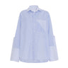 The ultimate boyfriend shirt with a convertible design that offers endless styling possibilities. Unbutton the sides completely for a fresh take on layering, or wear it buttoned for a classic menswear-inspired look. Featuring oversized French cuffs, mixed-stripe blocking on the collar and cuffs, and a relaxed, oversized fit, this striped shirt is a versatile staple for any wardrobe.