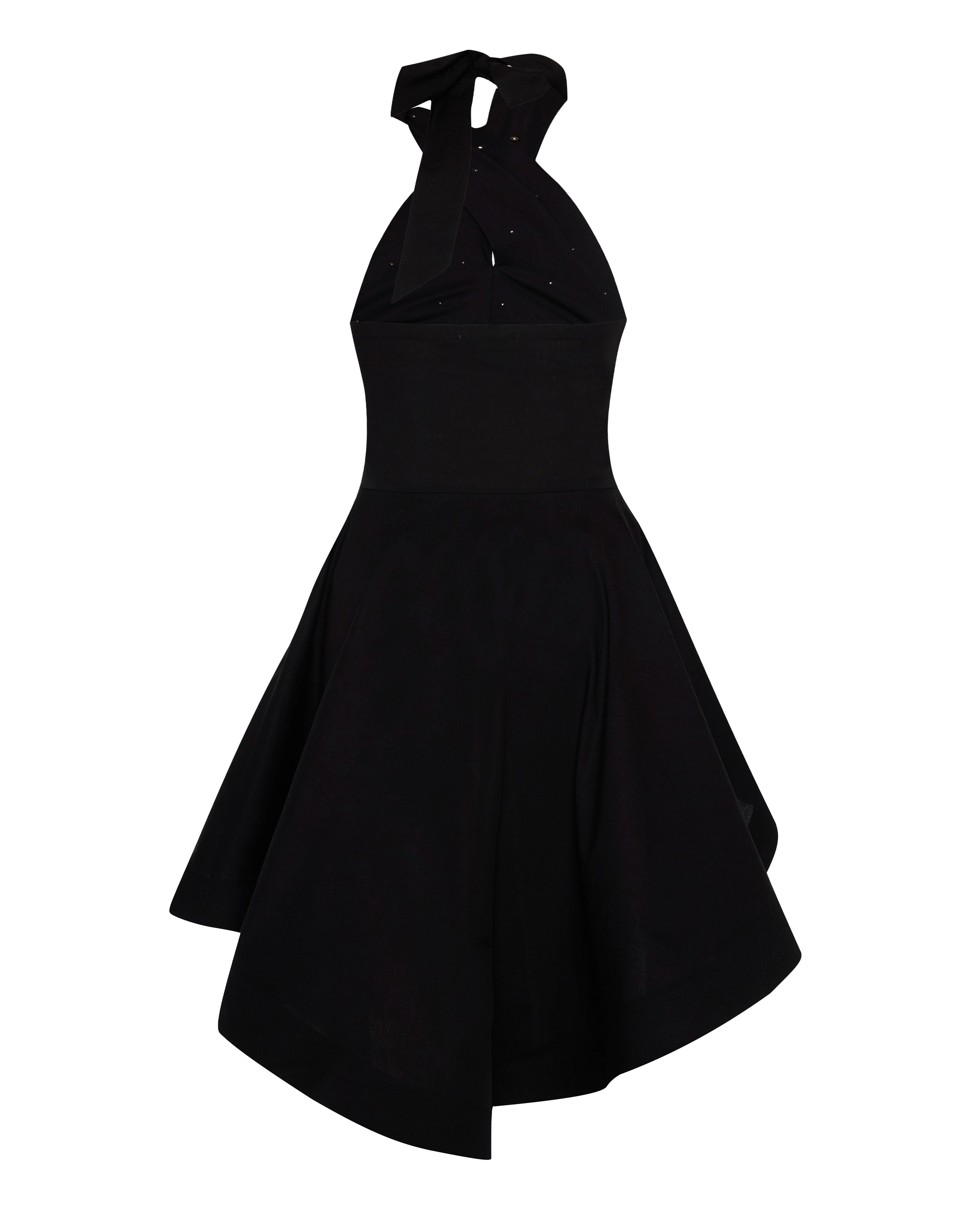 Cut to create shape through the bodice before flaring into a dramatic hem, it balances structure with movement. Designed for evening and occasion wear, it pairs easily with tailored trousers or skirts for a clean, modern look.