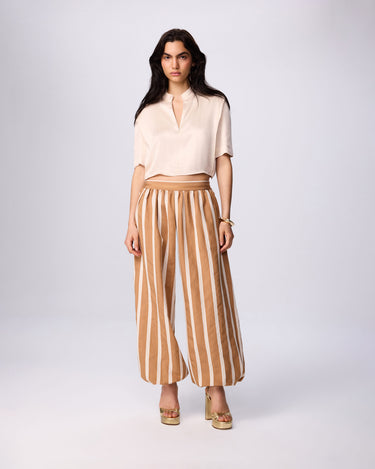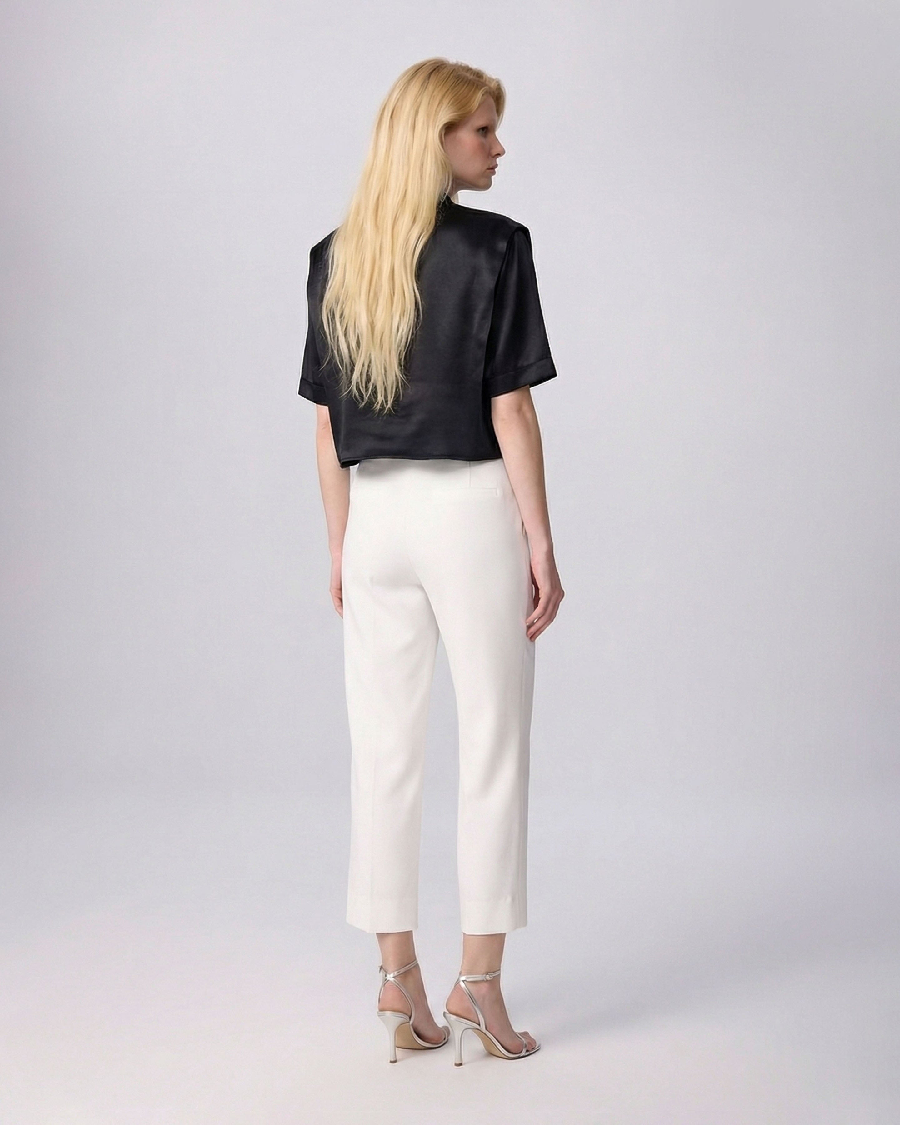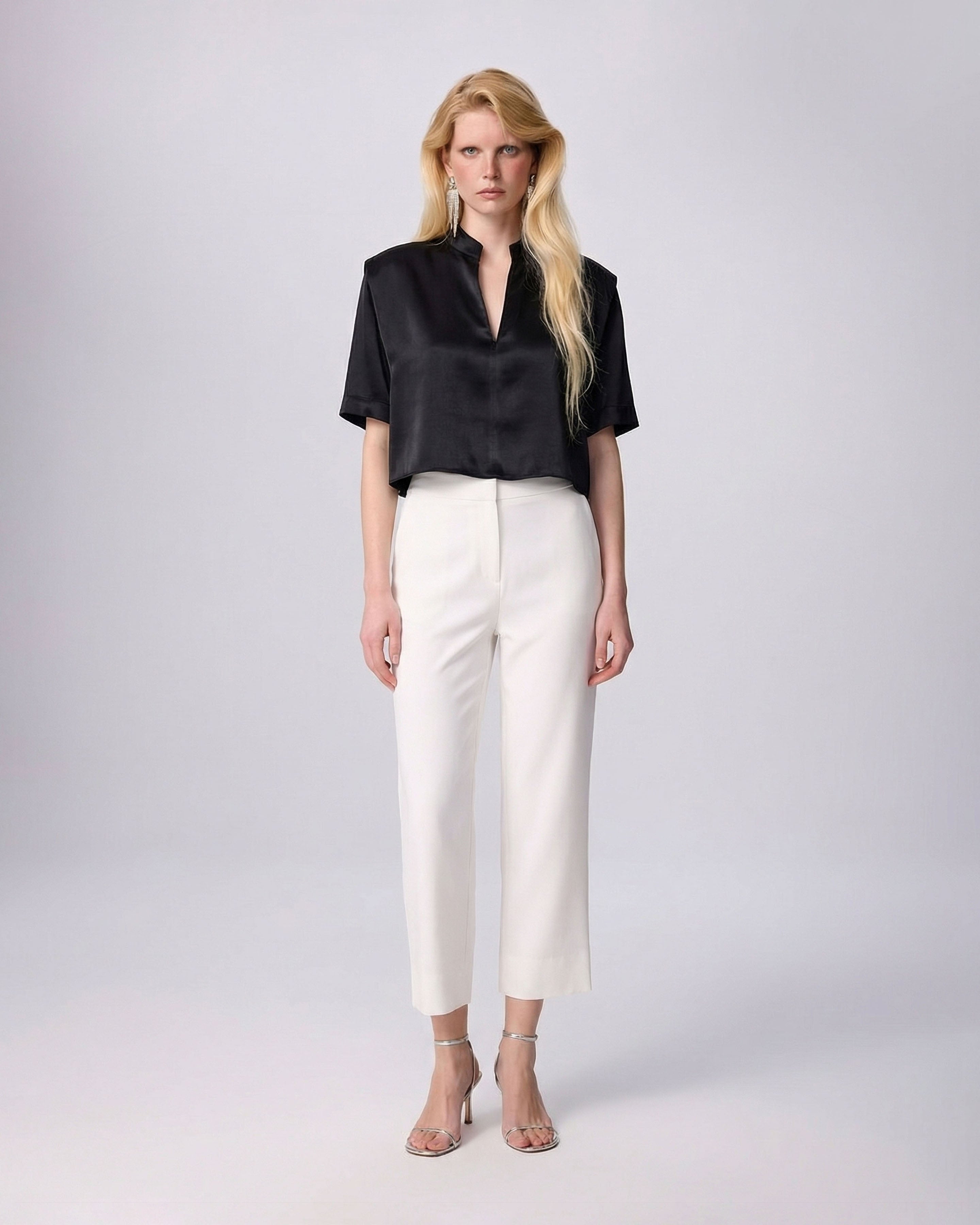 Crafted in a soft cupro-viscose blend with a smooth, lightly lustrous finish, it offers a fluid drape with a polished feel. Designed to pair seamlessly with tailoring or denim, it’s an elevated essential for everyday wear.