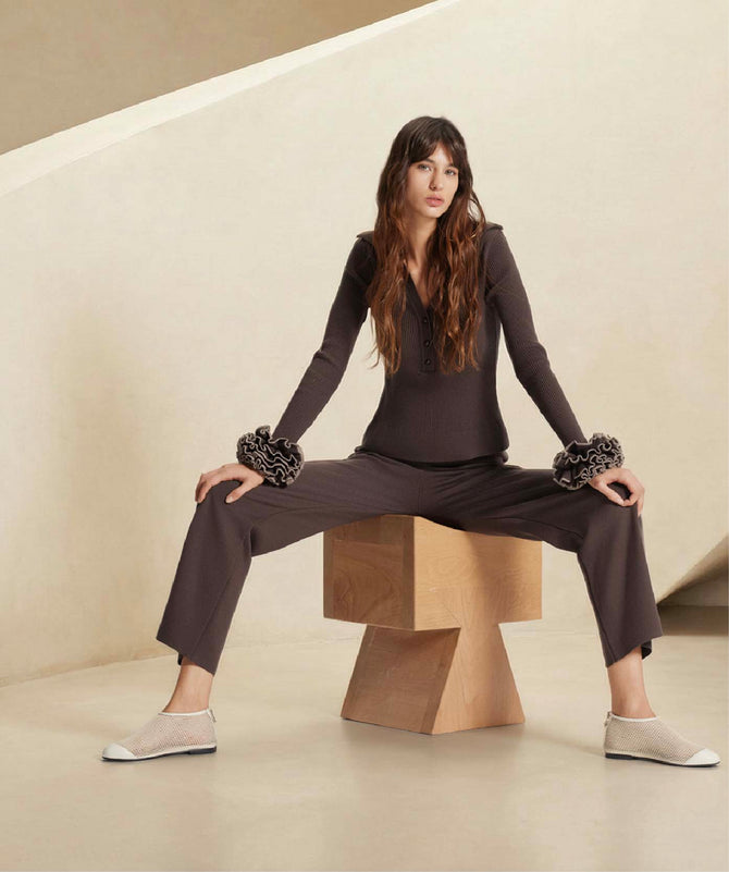 THEO’s Spring 2025 collection is Marco Lebels most personal yet, honoring a lifetime of muses. Inspired by his mother Thérèse, who instilled in him a love for finely made clothing and glamour, Lebel also draws from the strength of women across different eras. These include the old Hollywood allure of Edith Piaf, the 1950s and 1960s silhouettes worn by Brie Larson in "Lessons in Chemistry," the effortless style of modern-day It girl Charlotte Cardin, and the sensual creative expression of singer-songwriter Raye.
