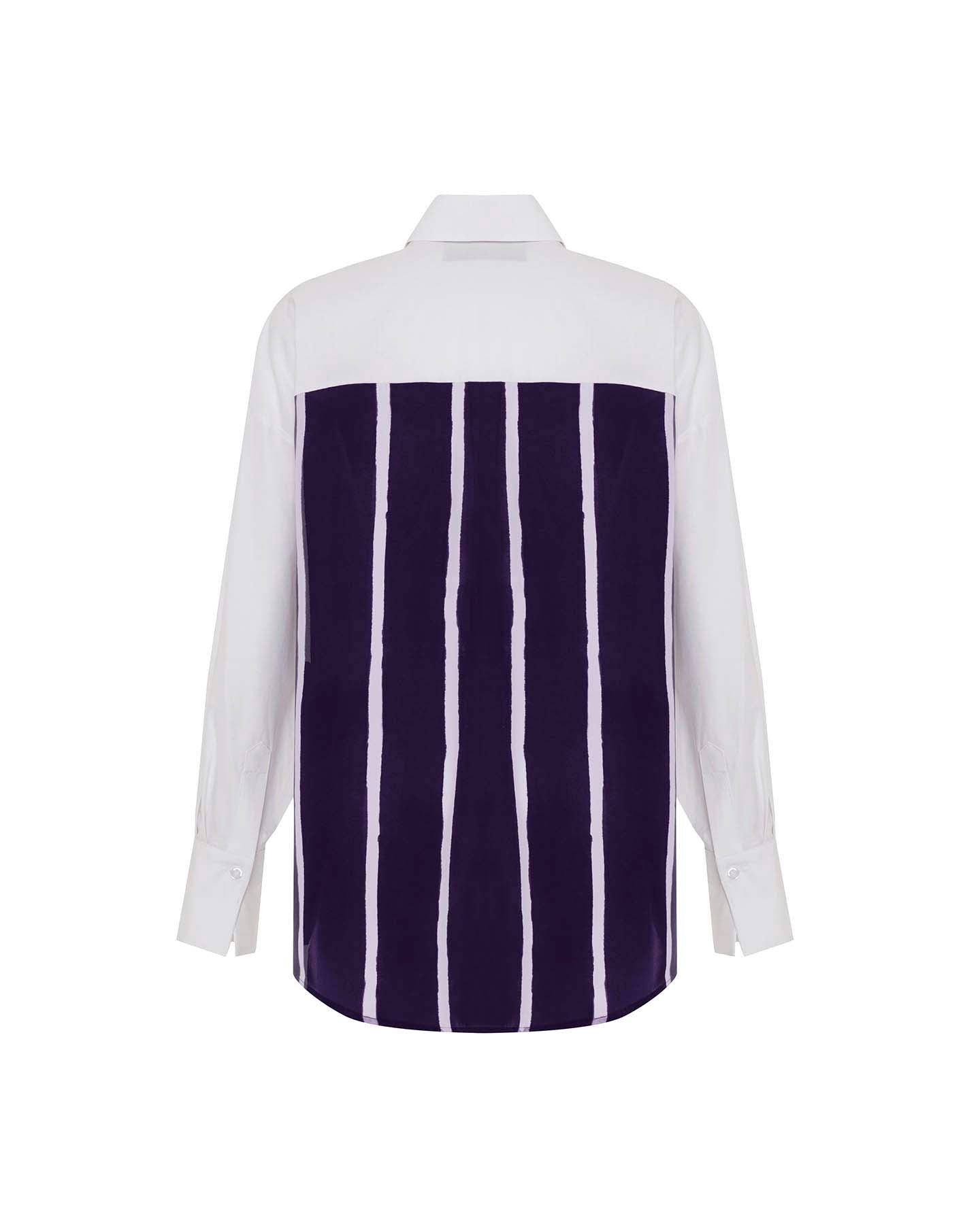 From crisp to unexpected, the Echo Banker Shirt reimagines menswear with an artistic twist. Crafted from stretch cotton poplin, the shirtÕs tailored front is balanced by a bold contrast panel in our exclusive Selena painterly stripe. The relaxed silhouette, straight fit, and sharp collar keep things structured, while the fluid back print adds movement and visual intrigue. It's a versatile statement piece, refined from the front, expressive from the back.